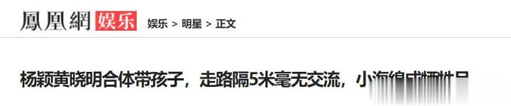 凤凰网娱乐——杨颖黄晓明合体带孩子,走路隔5米毫无交流,小海绵成牺牲品